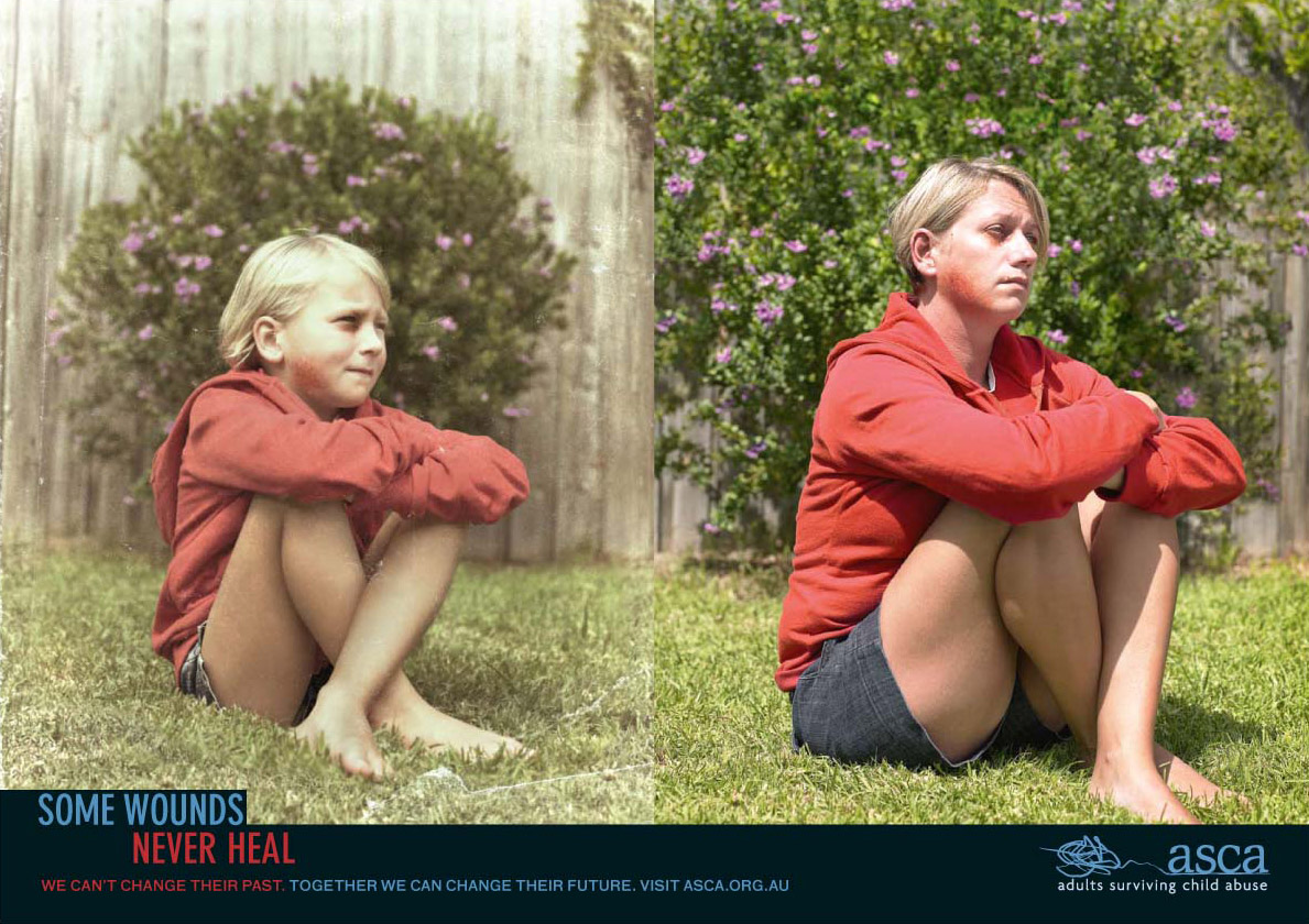 Pessoas que foram violentadas quando crianças carregam este peso durante a vida toda. É o que mostra a campanha da Adult Surviving Child Abuse (ASCA) criada pela agência Whybin\TBWA de Sydney. A idéia da campanha é comunicar que mesmo depois de muitos anos, algumas feridas nunca se curam. A ASCA possui um programa para adultos que sofreram algum tipo de abuso na infância.
