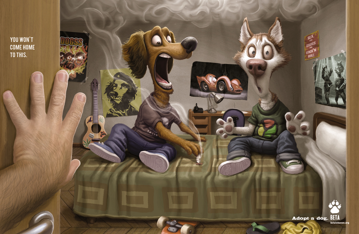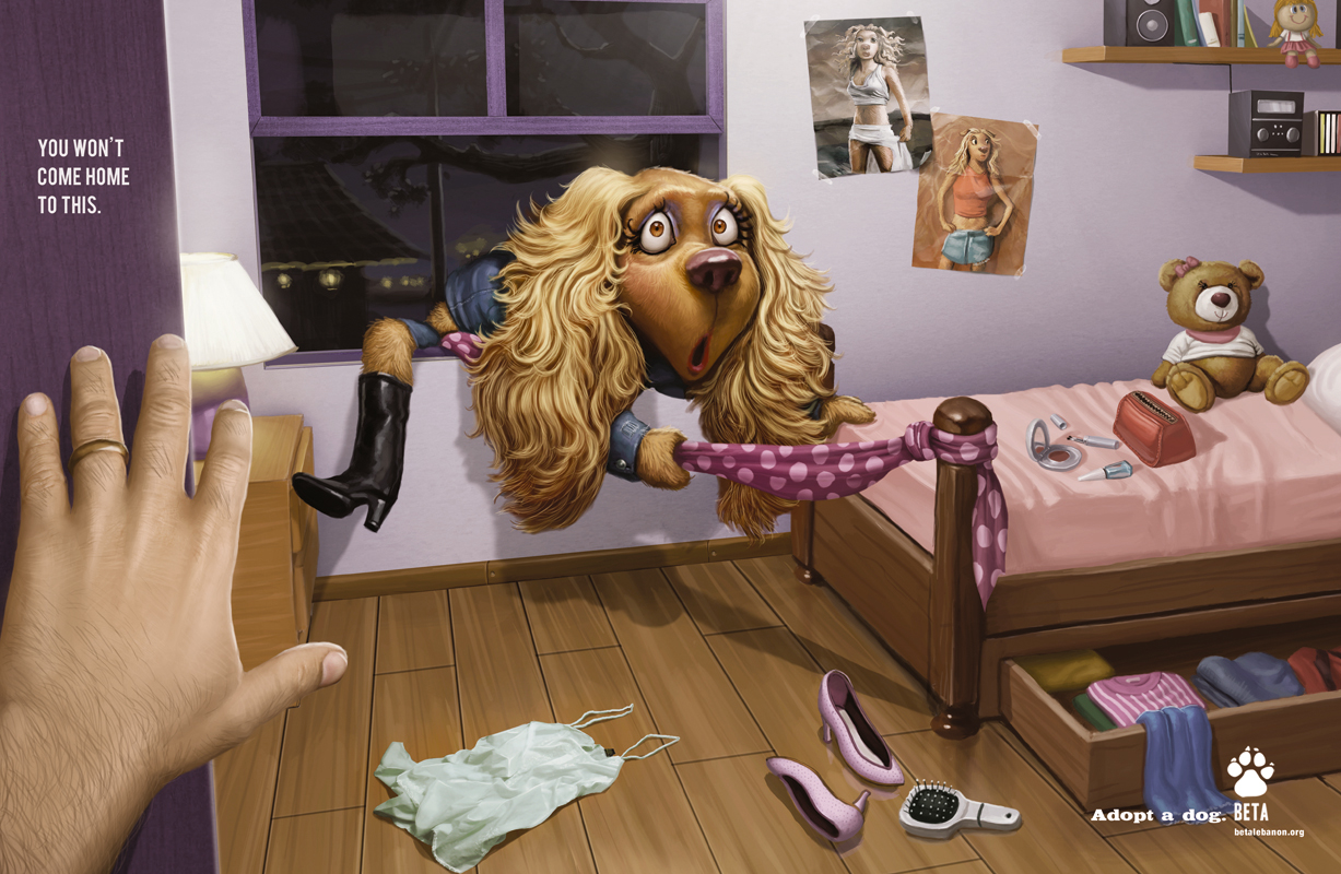 Campanha bem divertida da BETA feita pela Leo Burnett. A idéia é mostrar ao leitor que ele pode escapar de situações desagradáveis adotando um cão ao invés de ter um filho. A BETA é uma ONG libanesa localizada em Beirute, desde 2004 já resgataram mais de 1200 cães e gatos e realizaram mais de 700 adoções, o objetivo da campanha é aumentar este número.