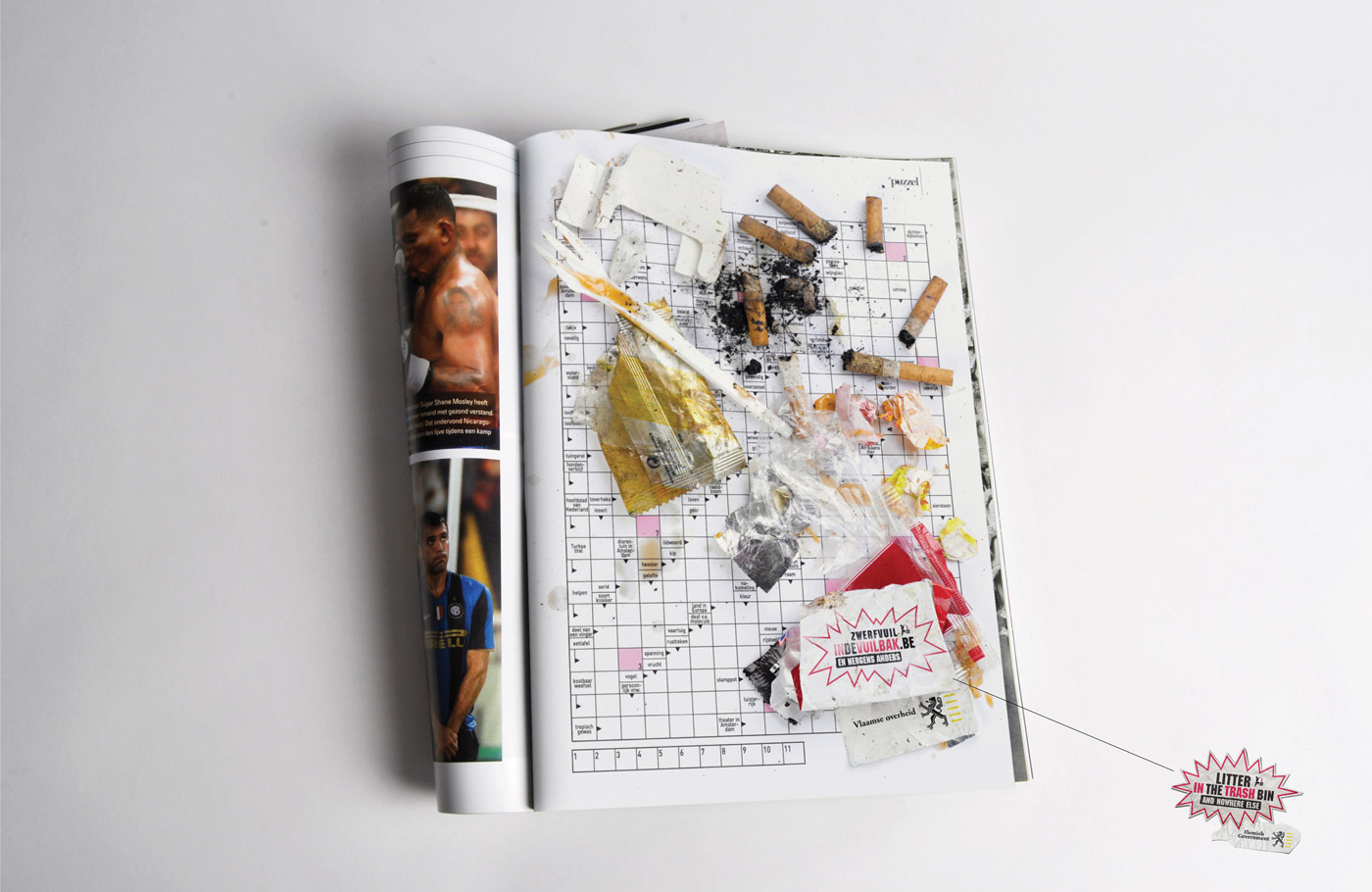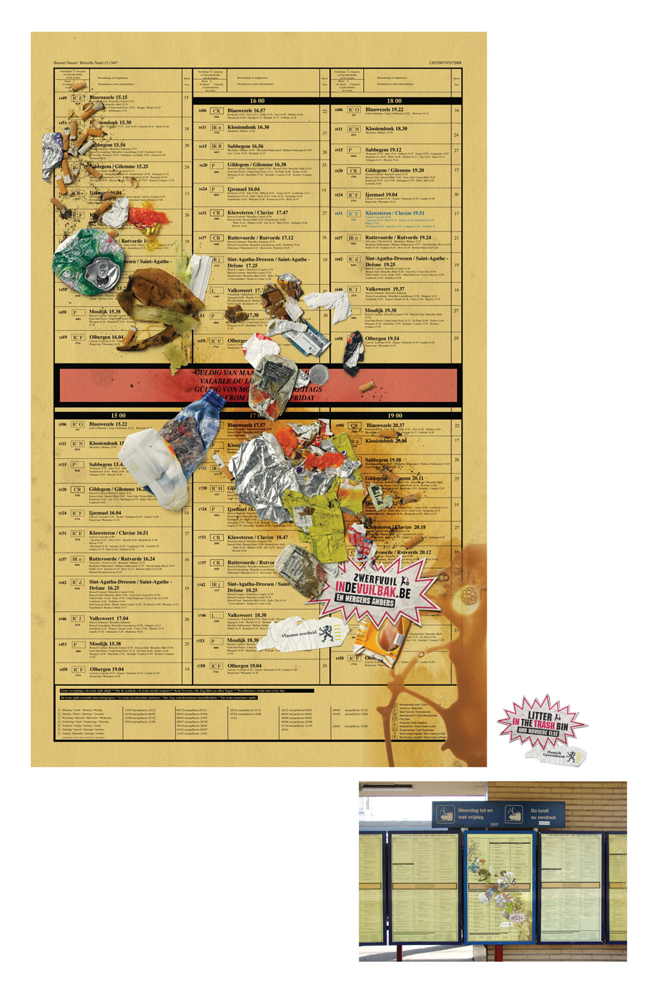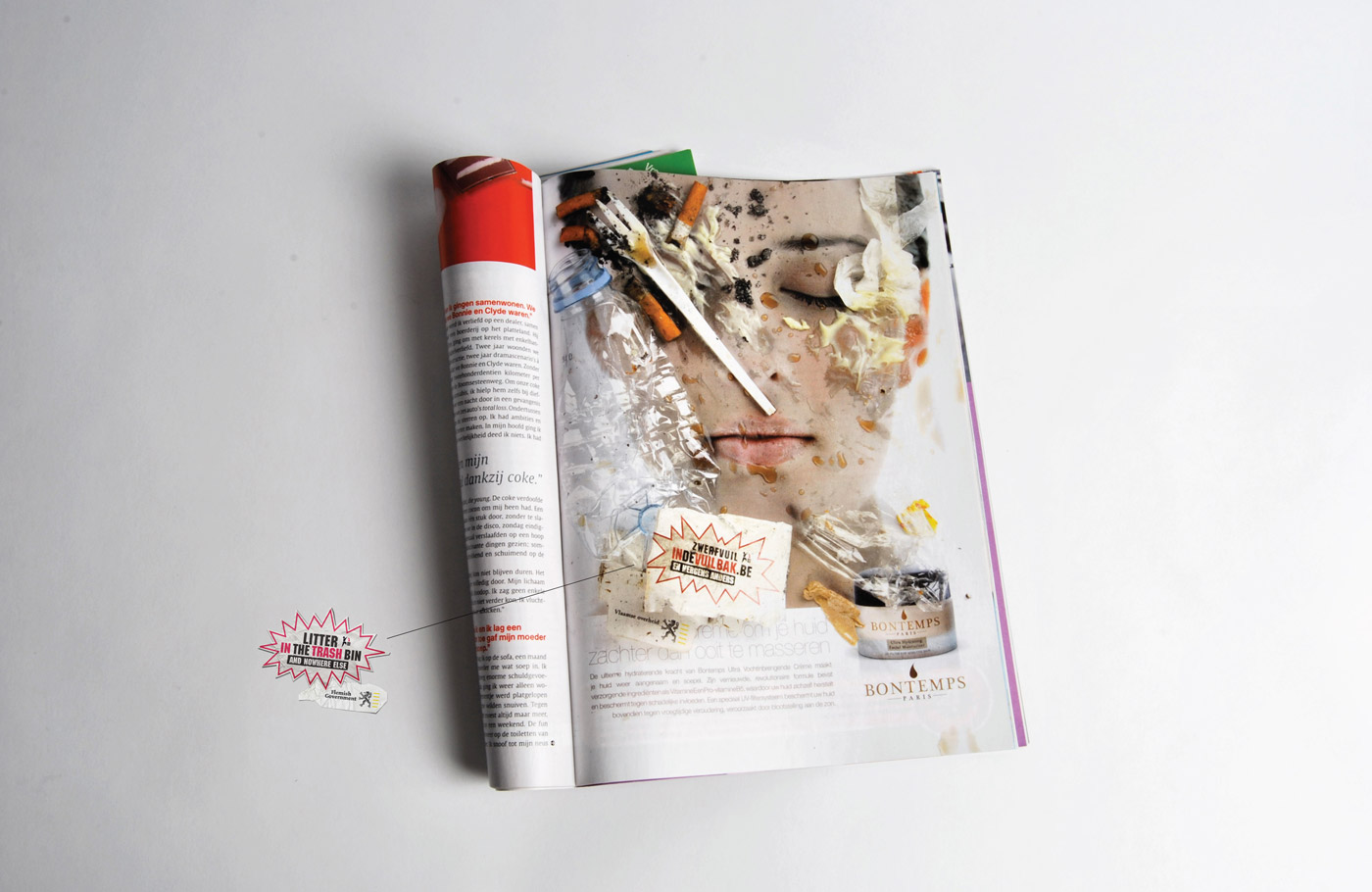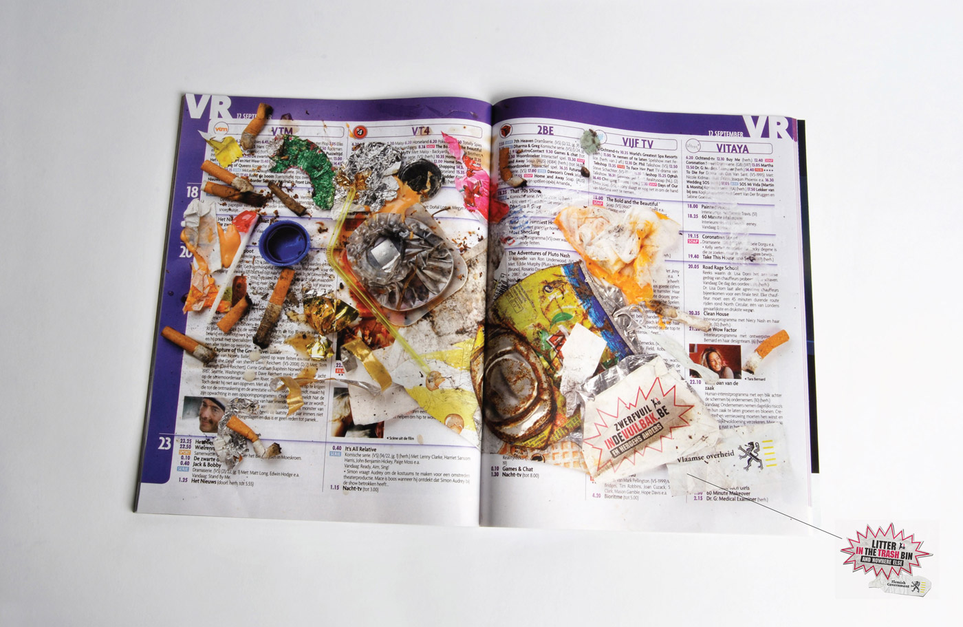 A Fost Plus é uma organização governamental que trabalha com reciclagem na Bélgica. A idéia aqui foi misturar o lixo, que normalmente encontramos nas calçadas, ao conteúdo de diversos tipos de mídias. A assinatura diz: O lixo pertence a lixeira, e não a outro lugar.