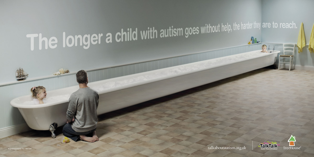 Campanha criada pela agência CHI & Partners para a TreeHouse, uma ONG que apoia pessoas com autismo e seus familiares. O conceito criativo foi muito bem executado e comunica com eficácia a mensagem para o público. O texto diz: Quanto mais tempo uma criança com autismo fica sem ajuda, mais difícil fica alcançá-la.