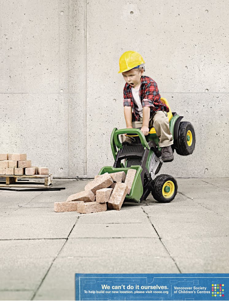 O objetivo do anúncio foi levantar fundos para a construção de um novo centro, e solução para sensibilizar o público partiu de dentro. As crianças aparecem realizando diversas tarefas de construção e a seguinte frase acompanha todos os anúncios: “Não conseguimos fazer por nós mesmos.” Para nos ajudar a construir uma nova locação, por favor visite vsocc.org.”