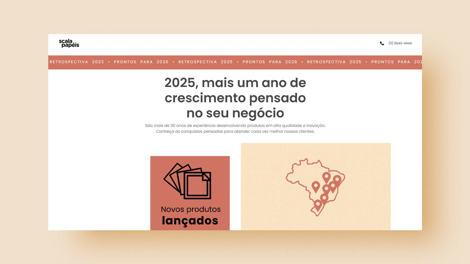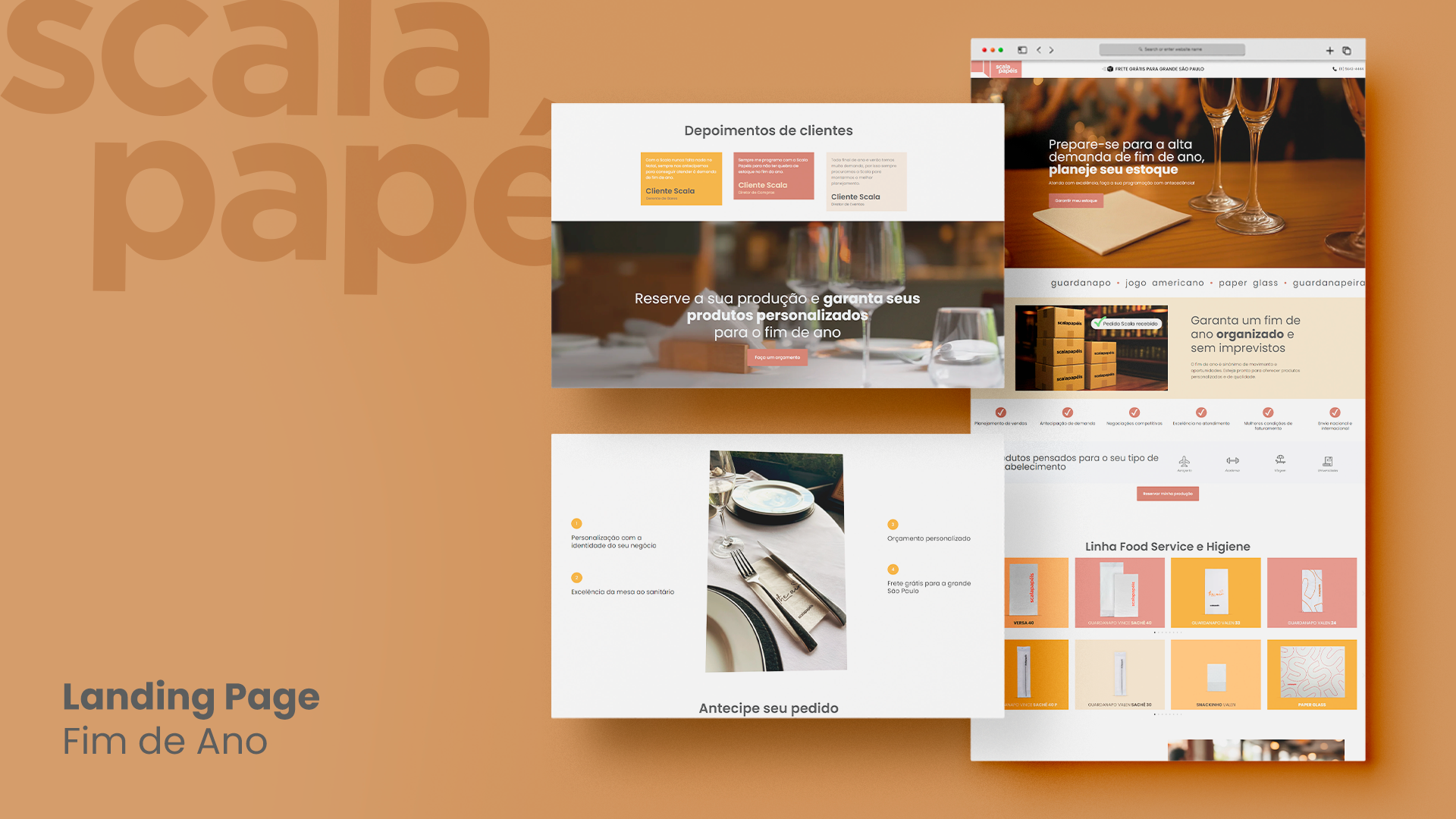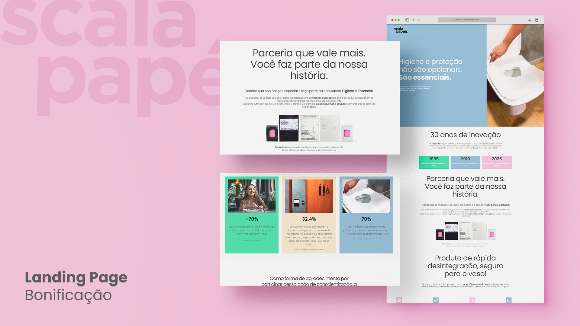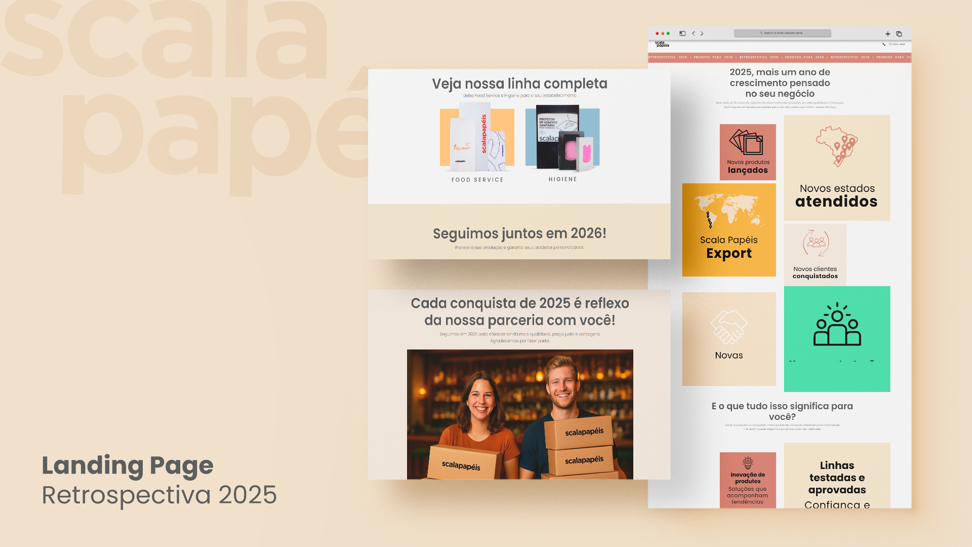 Como desdobramento do novo posicionamento da Scala Papéis, desenvolvemos landing pages estratégicas para campanhas comerciais. Cada página destaca sazonalidades, produtos e públicos, sempre alinhados à identidade visual e verbal da marca.