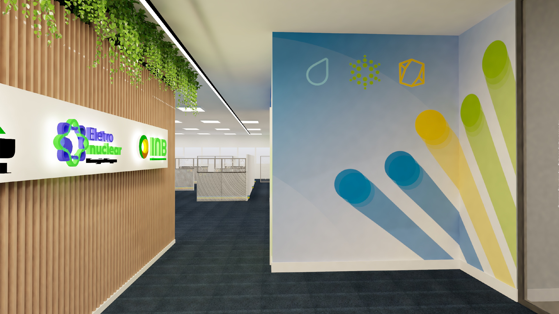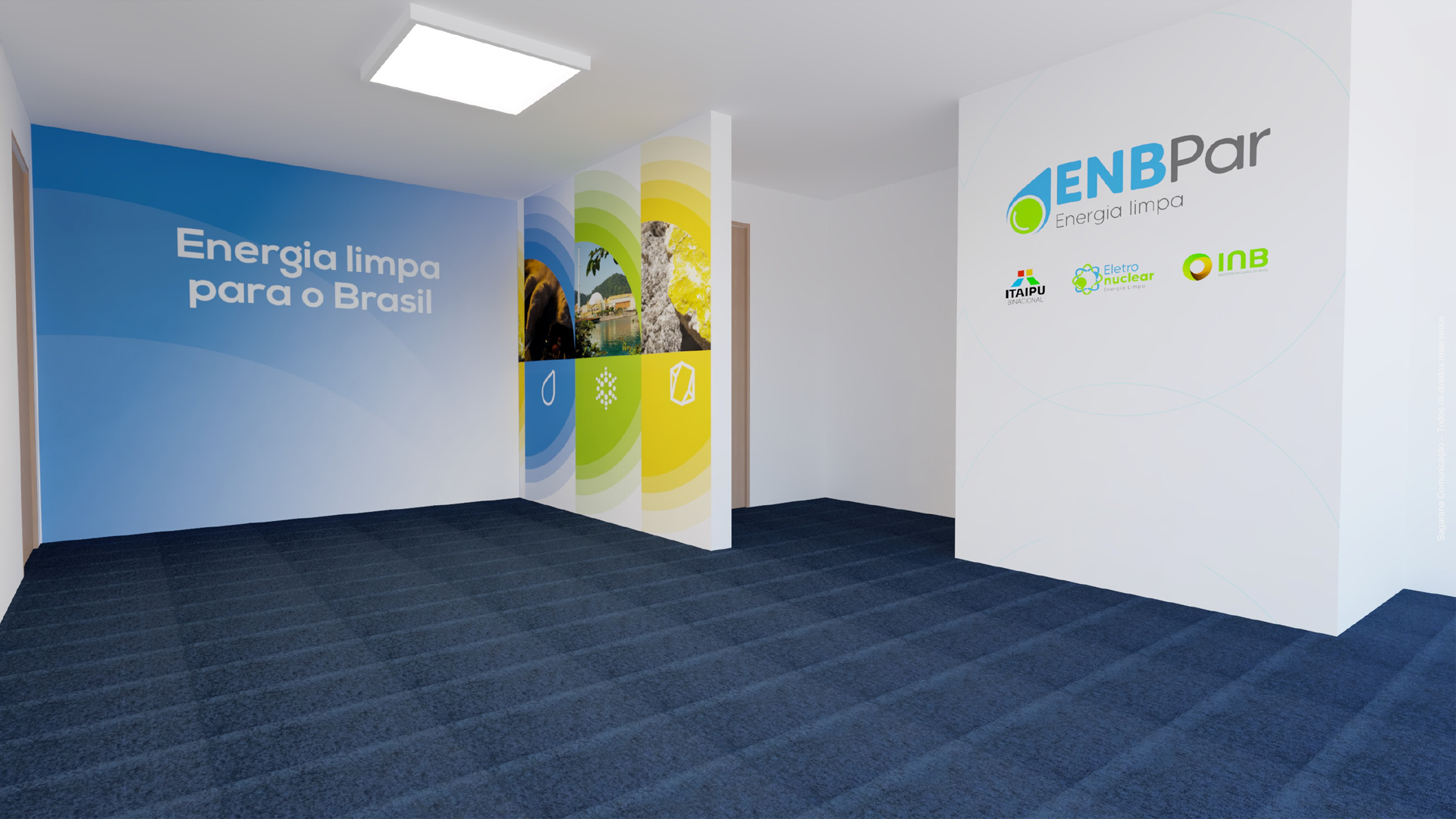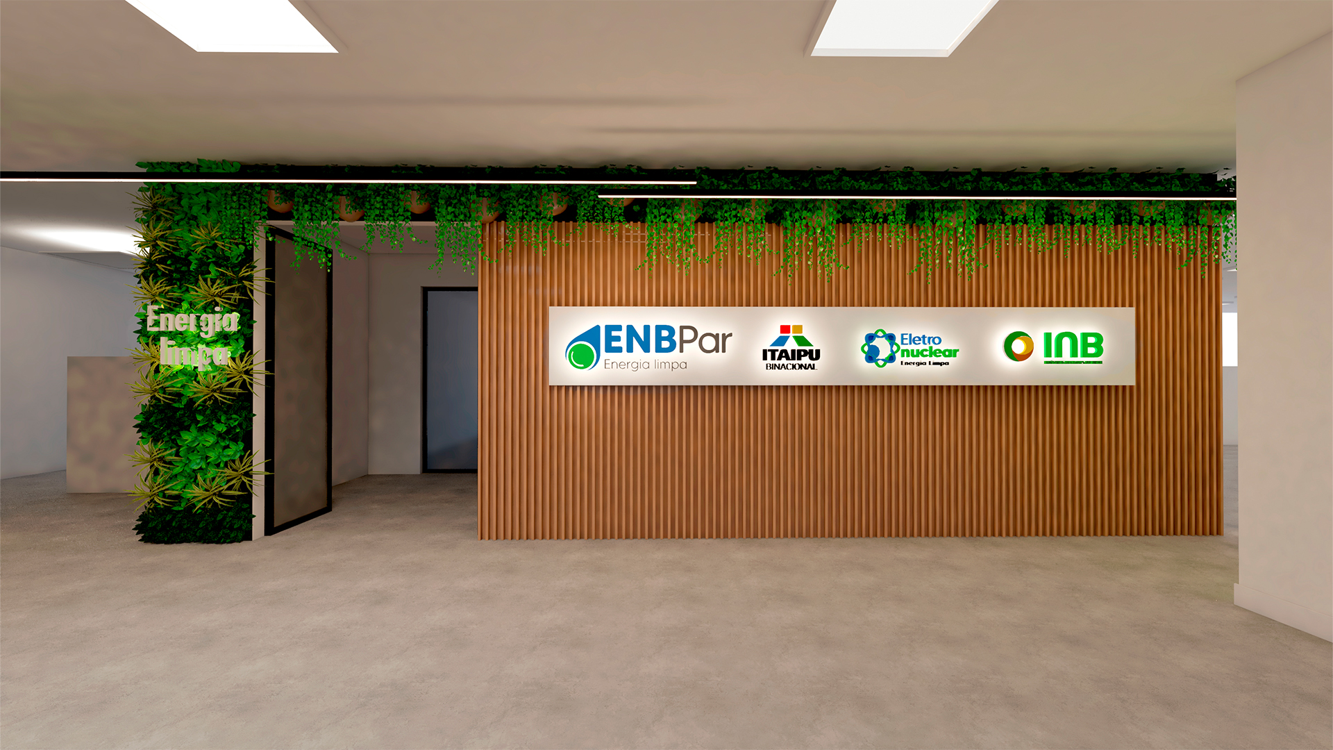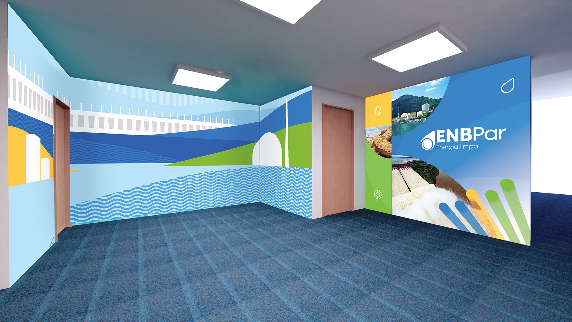 Desenvolvemos a comunicação visual para o novo escritório da ENBPar, que reúne Itaipu, Eletronuclear e INB em um só espaço. O projeto nasceu da necessidade de criar um ambiente integrado, agradável e alinhado ao projeto arquitetônico e aos valores das empresas. Assim, buscamos traduzir de forma simples e consistente a presença das quatro empresas em um mesmo território visual.